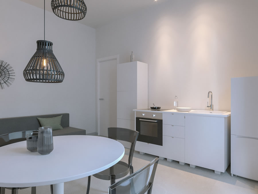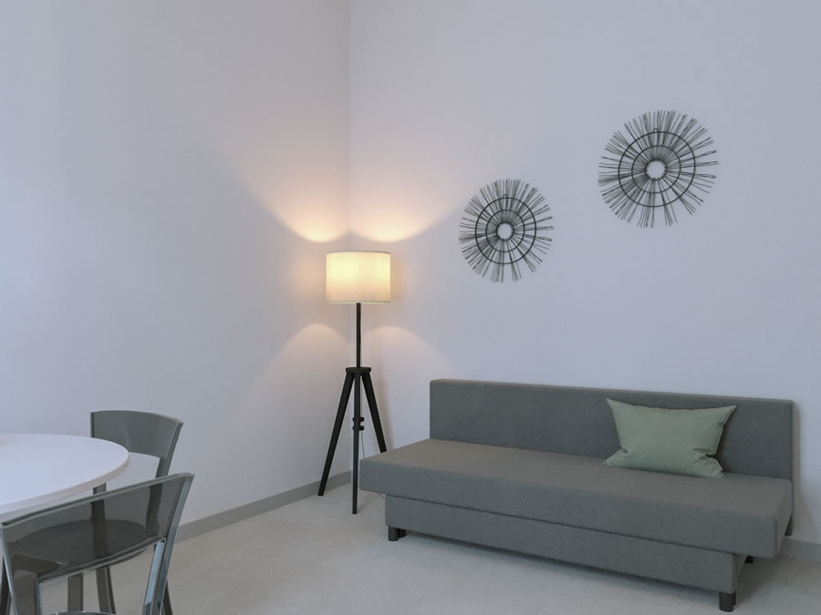 La zona living è il cuore pulsante dell'appartamento, progettata per offrire comfort e funzionalità. Un'area salotto accogliente, con comodo divano e dettagli di design, invita gli ospiti a rilassarsi. La cucina a vista, completamente attrezzata, consente di preparare gustose colazioni e pasti da gustare su spazi esterni.