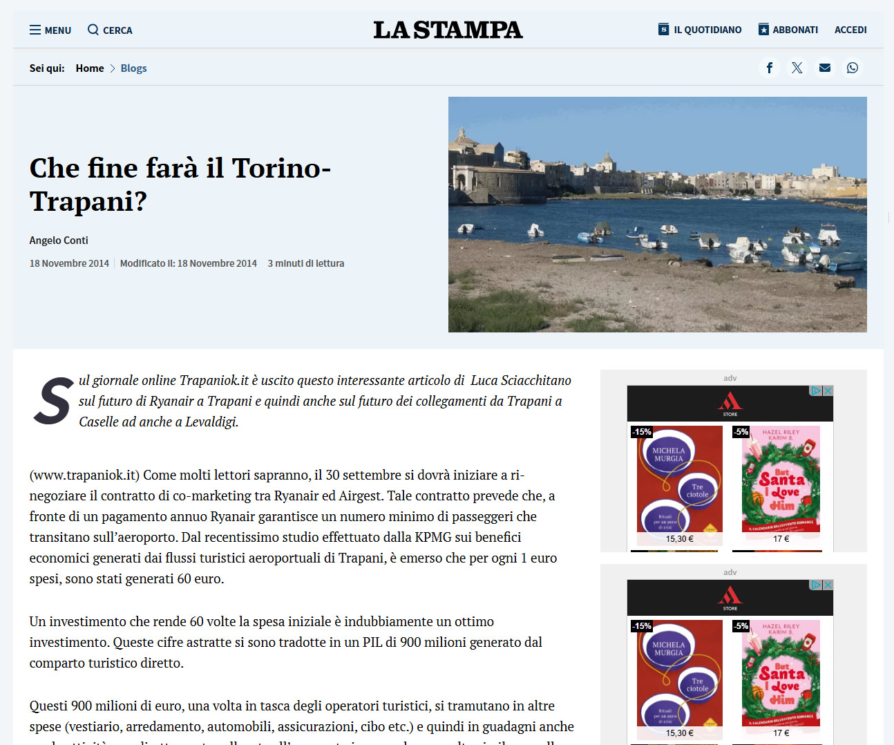 Un mio contributo dato al giornale La Stampa sul futuro di Ryanair a Trapani